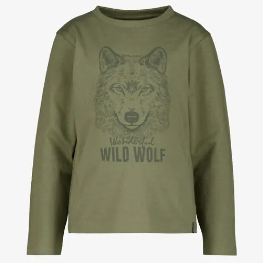 Unsigned Jongens shirt met lange mouwen en wolvenkop groen Outlet