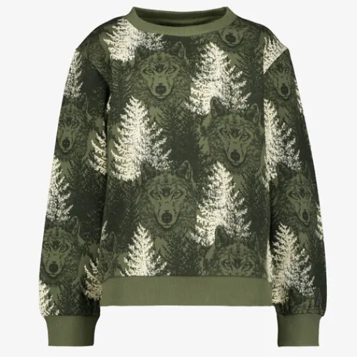 Unsigned Jongens sweater met wolven groen Sale