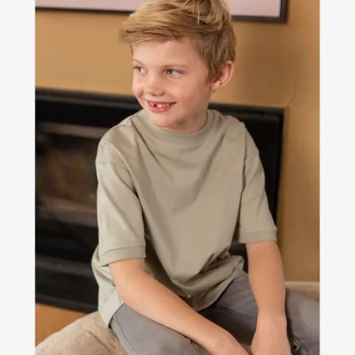 Beige T-shirt voor jongens van Unsigned. Voorzien van een ronde hals en korte mouwen. Gemaakt van 100% katoen.