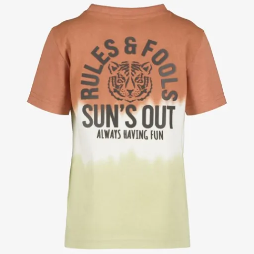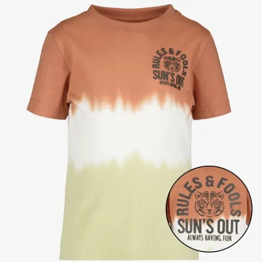 Jongens T-shirt in verschillende bruin- en beigetinten. Het shirt heeft korte mouwen, een ronde hals en een grote backprint. Gemaakt van 100% katoen.